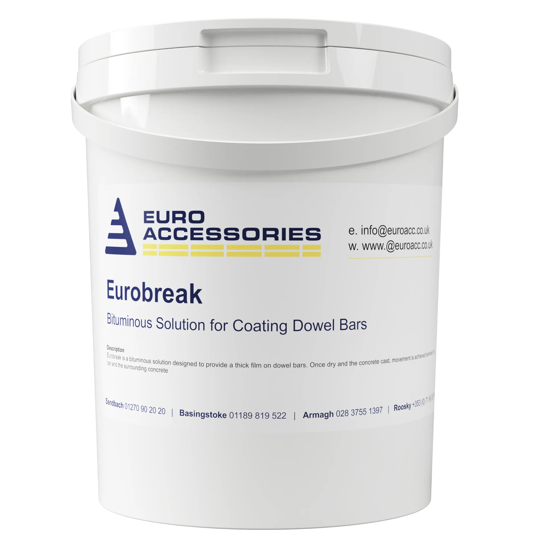 Bituminous Solution for Coating Dowel Bars Eurobreak is a bituminous solution designed to provide a thick film on dowel bars. Once dry and the concrete cast, movement is achieved between the bar and the surrounding concrete