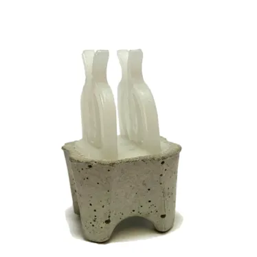 Concrete spacer with twin plastic clips and four point support for minimal contact with formwork. Minimum Concrete Strength of 50N/mm2. Approved according to DBV specification.