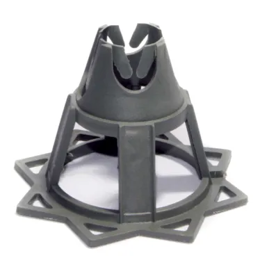 A very stable heavy duty mesh spacer capable of withstanding vertical loads of 100kg. The wide base distributes the load of the reinforcing mesh over a large area, preventing accidental perforation of damp proof and gas membranes. The clipping mechanism prevents rotation of the spacer when it is used on vertical formwork faces, making it ideal for use with permanent formwork systems. Manufactured in accordance with BS7973-1 :2001